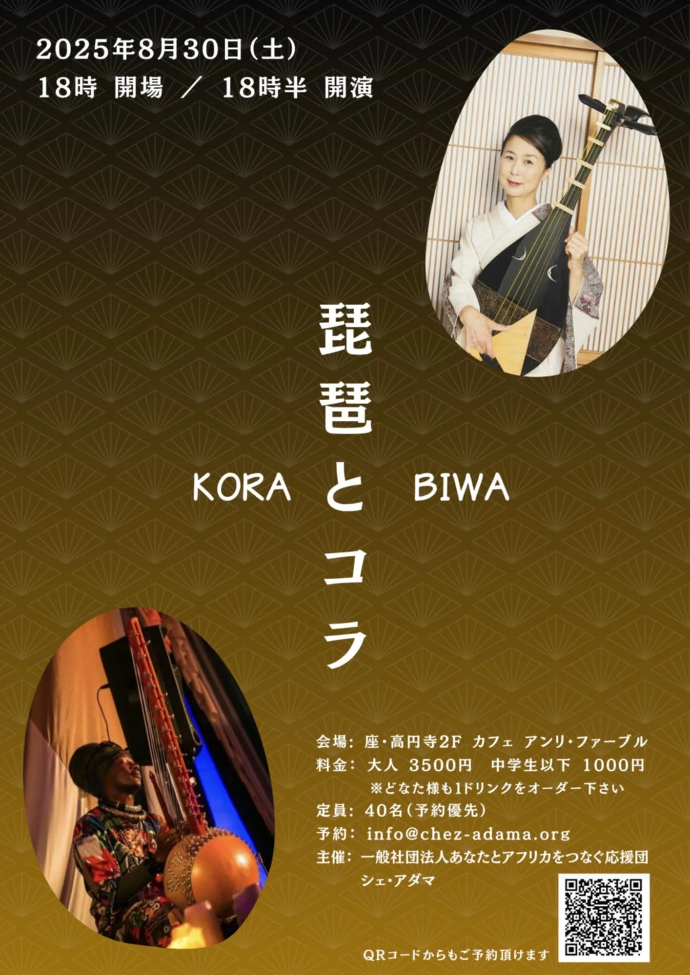 今回の企画は、アフリカと日本を音楽(楽器)で繋ぐ試みです。コラと琵琶の共通点は